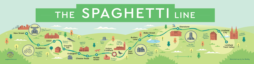 Welcome to The Spaghetti Line ; constituted to promote all the wonderful places to visit and experience just a train ride away in the North of Brum. Along the way stop off at our wonderful Stations lovingly cared for by Adopters, volunteers helping to make stop offs welcoming. This website tells you a little about each of our Adopter groups ; we’d love you to join us. We meet when we can to help keep our stations clean, tidy and nourishing for humans and wildlife.