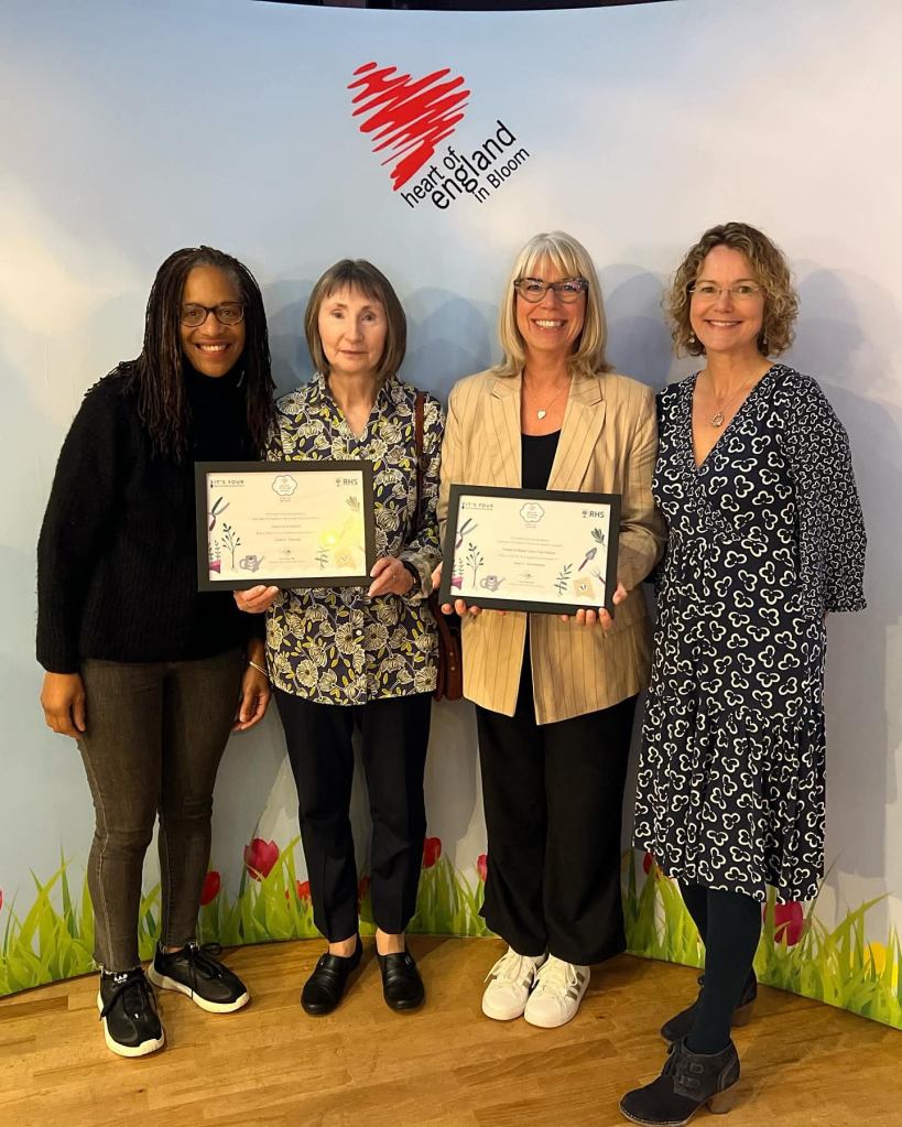 This award helps community groups to develop their green spaces. RHS judges visit to assess how well groups have done achieving Community, Gardening and Sustainability targets, and provide advice on how to develop these areas further. FOWGTS take part in the scheme as well as our friends the Erdington Litter Busters just two stops along the line , and last year both groups picked up their awards together.