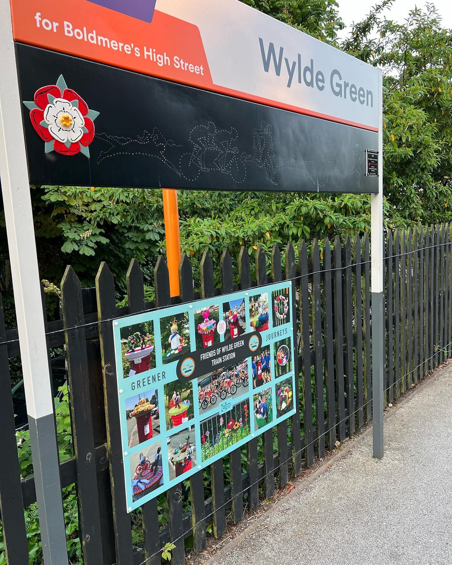 Friends of Wylde Green Train Station was formed by two neighbours Nikki and Dawn in October 2020. The group works closely with West Midlands Railways and Network Rail to make positive changes. The aim is to make Wylde Green Train Station a much loved space for all to enjoy, improve the biodiversity for plants and wildlife, engage with the community to make that happen, and most importantly encourage the public back onto the trains as a sustainable way to travel. Anyone who has visited or travelled through Wylde Green Station over recent months will be familiar with the @Annatomix Fox mural, Fatma Mohiuddin’s (young Poet Laureate 2020/22) poem that brought the Fox to life, the @craftybrum shutter mural, the vibrant green corridor, the endless showcasing of local art in the notice boards and the photo-boards on the platforms. Many of the plants are donated from neighbouring gardens and allotments and local artists give their artwork for free to display. The group also works with other local community groups, has presented to other groups, created two community pocket gardens, displayed art in a high street cafe, taken part in Sutton Heritage Week, and are proud members of Birmingham Outside Space Forum. As a group we aim to meet once a month at the Station for litter picking, planting, digging, tidying, and Adopters dip in and out to suit. We welcome new ideas and leads for how to further showcase our wonderful station.
